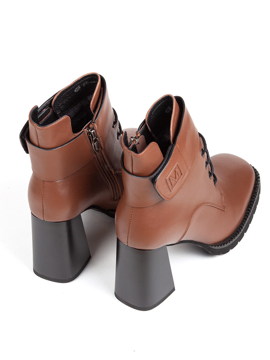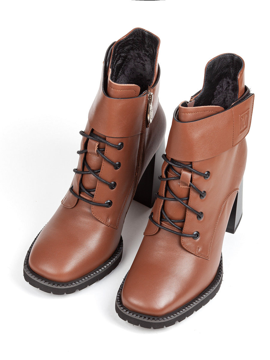 Зимние ботинки женские на высоком каблуке изготовлены из натуральной кожи. Подкладка из натуральной овчины подарит тепло и уют ногам в холодную погоду. Устойчивый каблук и мысок прямоугольной формы делают зимние ботильоны удобными и комфортными. Шнуровка по всей длине регулирует ширину ботинок и фиксирует их на ноге. Модель дополнена широким ремешком вокруг щиколотки с застежкой на липучку. Утолщенная подошва с рельефным протектором не скользит, устойчива к деформациям и низким температурам, добавит уверенность при ходьбе. Материал верха не промокает и легко отмывается. Женские зимние ботильоны в классическом стиле стиле подойдут молодым девушкам и взрослым женщинам. Ботильоны будут незаменимы для повседневной носки, для работы, отлично подойдут к деловому и вечернему стилю. Купить женские ботинки, ботильоны, теплые кроссовки для осени и зимы можно в интернет магазине TABRIANO. Обратите внимание на акции и распродажи.